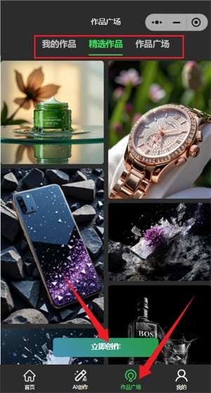 在【作品广场】里可以浏览到海量优质AI作品,点击【立即创作】就能生成同款。