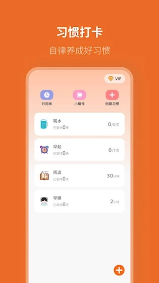 在习惯界面,你能够自定义创建习惯,设置目标次数,开启属于自己的自律生活。