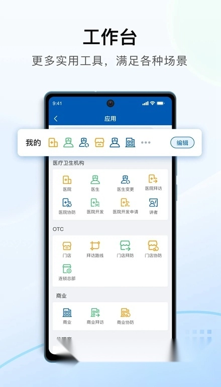 针对医疗器械销售场景进行定制化开发,为相关人员提供专业化的移动办公支持服务。