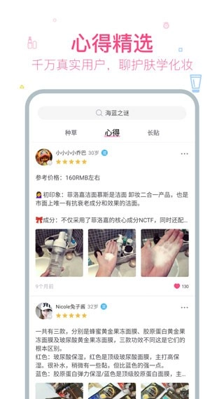 心得分享:用户能够发布自己的美妆体验,涵盖产品使用心得、化妆方法等内容。