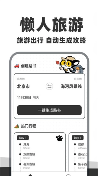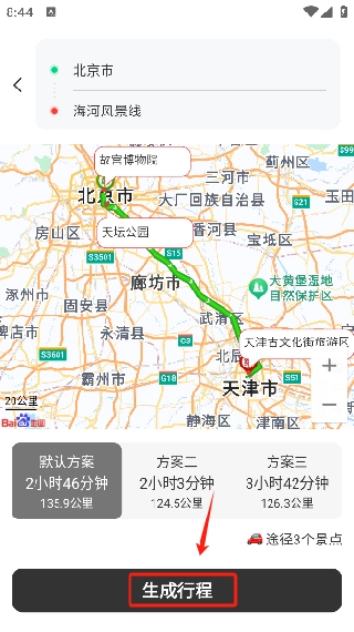 点击生成行程,还可查看各类旅游景点规划内容。