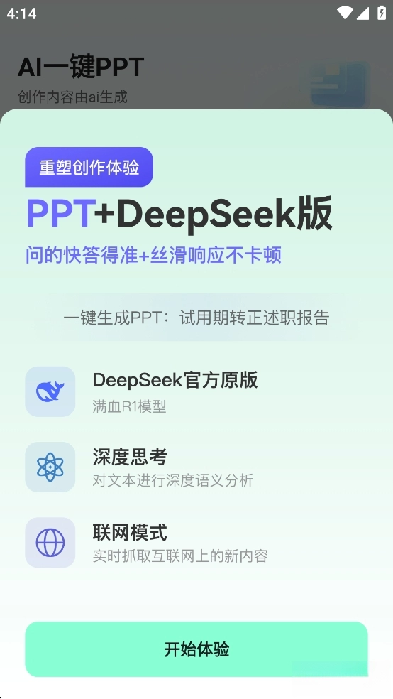 还在为制作PPT熬夜加班吗?是不是总在模板挑选、文案撰写和排版设计上费尽心神?AI一键PPT就此诞生,它可是一款颠覆性的智能演示文档生成工具。借助前沿人工智能技术,我们能把原本要花数小时的PPT制作流程,缩短到一分钟内搞定。您只需专注于核心内容,那些繁琐的设计和排版工作,尽管放心交给我们。