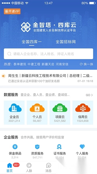 实现全国建筑企业互联互通,全面呈现行业信息;