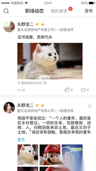 可以在人员库等页面快速发布求职、招聘、建造师相关信息以及个人服务内容。