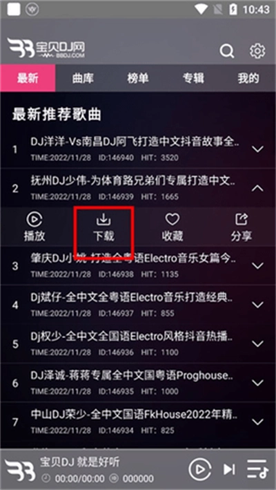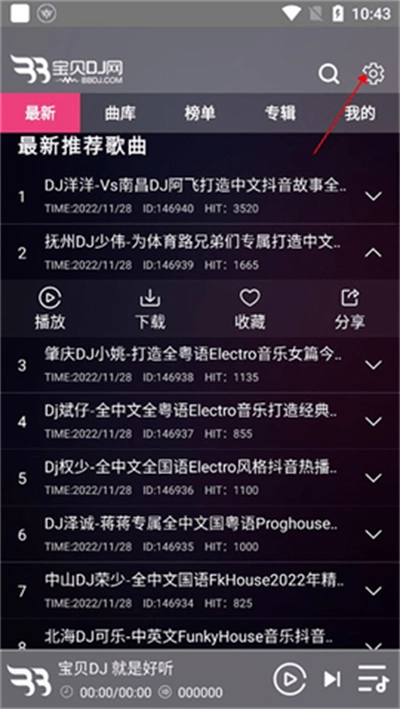 1、首先我们打开宝贝DJ,随后点开软件首页,你可以看到各类DJ歌曲,单击你要的一首;