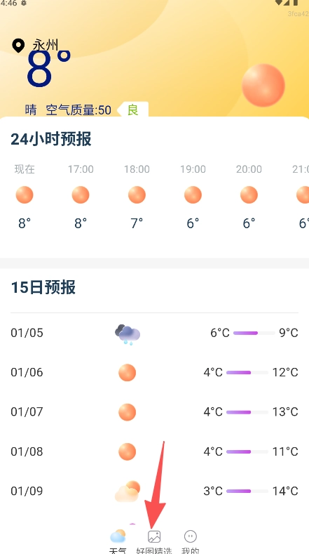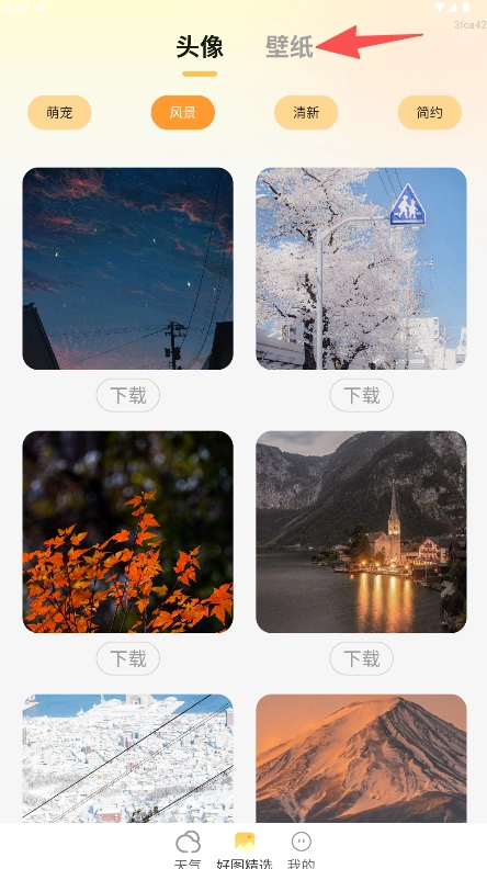 壁纸功能和天气查询导航不再整合在一起,而是通过底部单独设置的“好图精选”标签进入,功能路径一目了然,彼此之间不会相互影响。